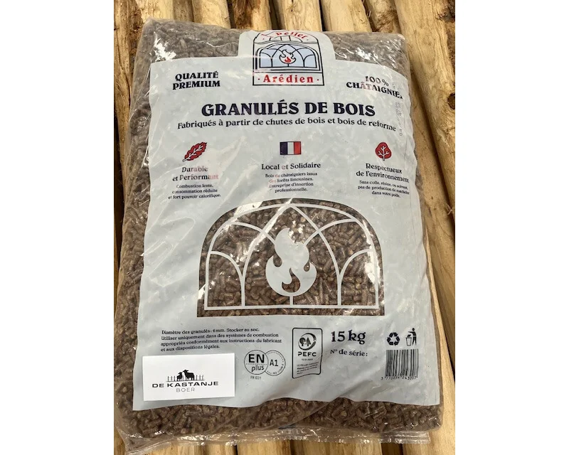Deze 6 mm houtpellet is een hoogwaardige pellet gemaakt van 100% puur kastanjehout. Zonder toevoeging van lijm, hars of chemische stoffen biedt deze pellet een zuivere en efficiënte verbranding. Dankzij het lage asgehalte en de hoge calorische waarde is deze pellet ideaal voor pelletkachels en automatische installaties. Gecertificeerd volgens ENplus A1 en PEFC, wat garant staat voor duurzaamheid, herkomst controle en uitstekende prestaties.
