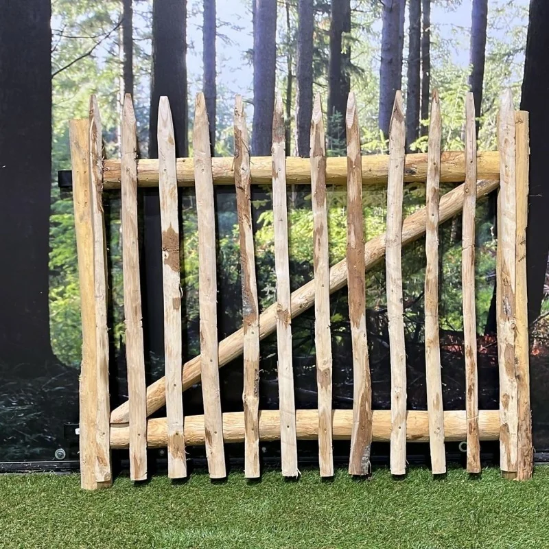 De poorten van Frans kastanjehout zijn van hoge kwaliteit en verkrijgbaar in 3 standaard hoogtematen en 3 standaard breedtematen of verkrijgbaar in elke door u gewenste maat. Te gebruiken als enkele of dubbele poort. De poorten zijn voorzien van zwart hang- en sluitwerk, waarvan de duim verstelbaar is. De half houts verbindingen geven de poorten een nostalgisch uiterlijk en combineren natuurlijk perfect met de kastanje schapenhekken en de palen. Kom bij ons langs en bekijk de verschillende opstellingen.