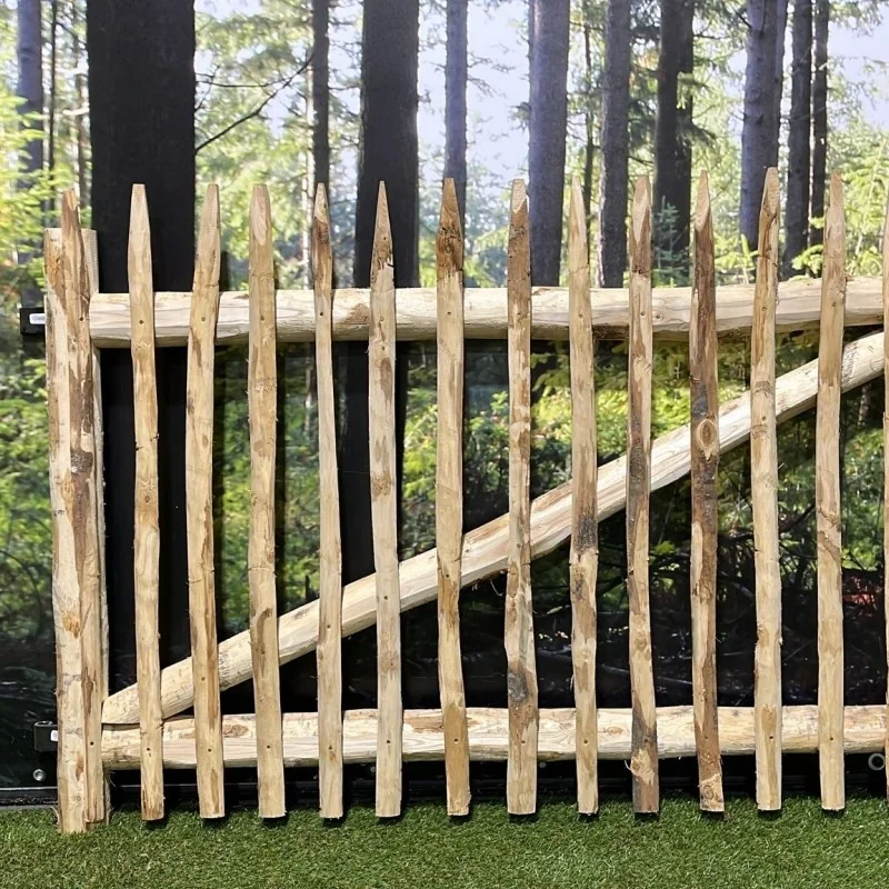 De poorten van Frans kastanjehout zijn van hoge kwaliteit en verkrijgbaar in 3 standaard hoogtematen en 3 standaard breedtematen of verkrijgbaar in elke door u gewenste maat. Te gebruiken als enkele of dubbele poort. De poorten zijn voorzien van zwart hang- en sluitwerk, waarvan de duim verstelbaar is. De half houts verbindingen geven de poorten een nostalgisch uiterlijk en combineren natuurlijk perfect met de kastanje schapenhekken en de palen. Kom bij ons langs en bekijk de verschillende opstellingen.
