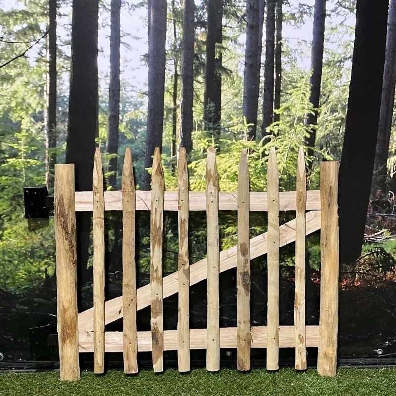 De poorten van Frans kastanjehout zijn van hoge kwaliteit en verkrijgbaar in 3 standaard hoogtematen en 3 standaard breedtematen of verkrijgbaar in elke door u gewenste maat. Te gebruiken als enkele of dubbele poort. De poorten zijn voorzien van zwart hang- en sluitwerk. Dit geeft de poorten een nostalgisch uiterlijk en combineren natuurlijk perfect met de kastanje schapenhekken en de palen. Kom bij ons langs en bekijk de verschillende opstellingen.